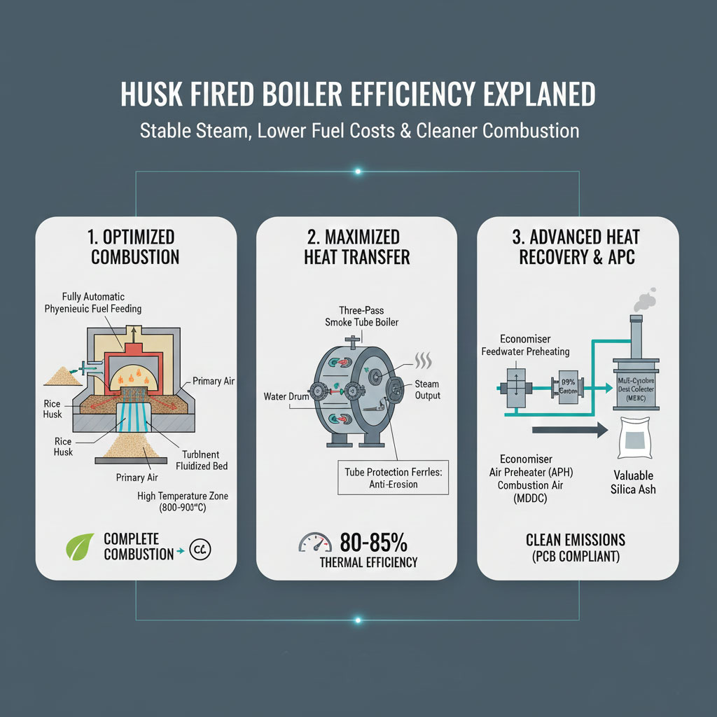 Husk Fired Boiler Efficiency Explained: How to Achieve Stable Steam, Lower Fuel Cost & Cleaner Combustion