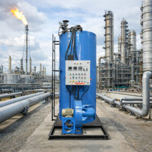 The Vertical Three Pass Oil/Gas Fired Thermic Fluid Heater is the pinnacle of industrial heat transfer technology, engineered for operations that require high and precise temperatures without the burden of high pressure.